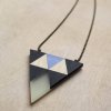 Náhrdelník je navržený v principu "zero waste" tak, abych jedním řezem rozdělila materiál na jednotlivé tvary a negenerovala žádný zbytečný odpad. K lepení používám tzv. ekologické lepidlo bez Dichlormethanu. Je ručně broušený a ošetřený olejem s atestací pro přímý styk s pokožkou a potravinami.