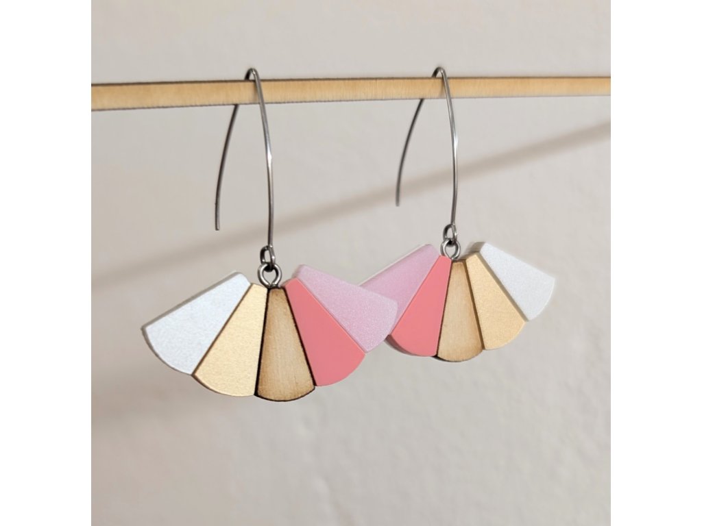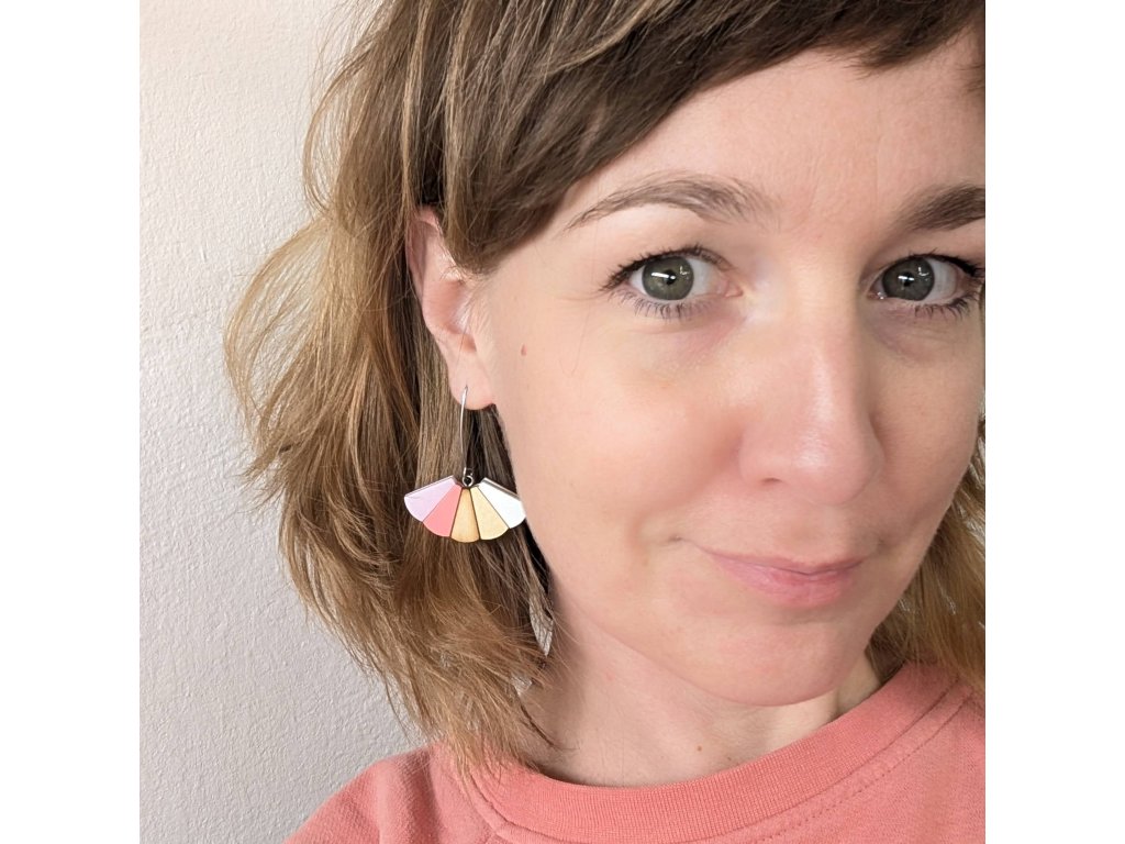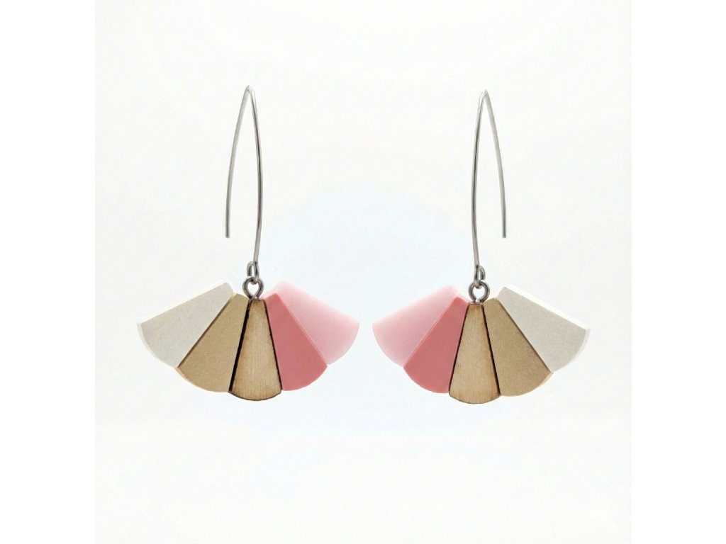 Tyto náušnice potěší všechny milovnice jemných barevných tónů. Jejím základem je starorůžová a dřevo.