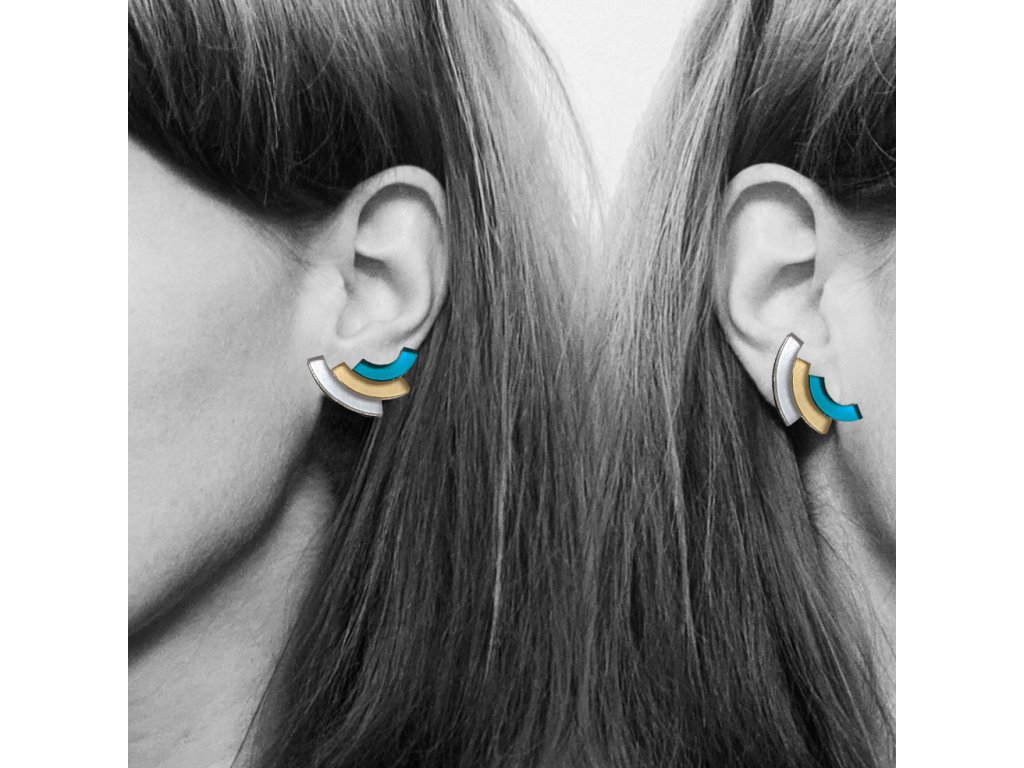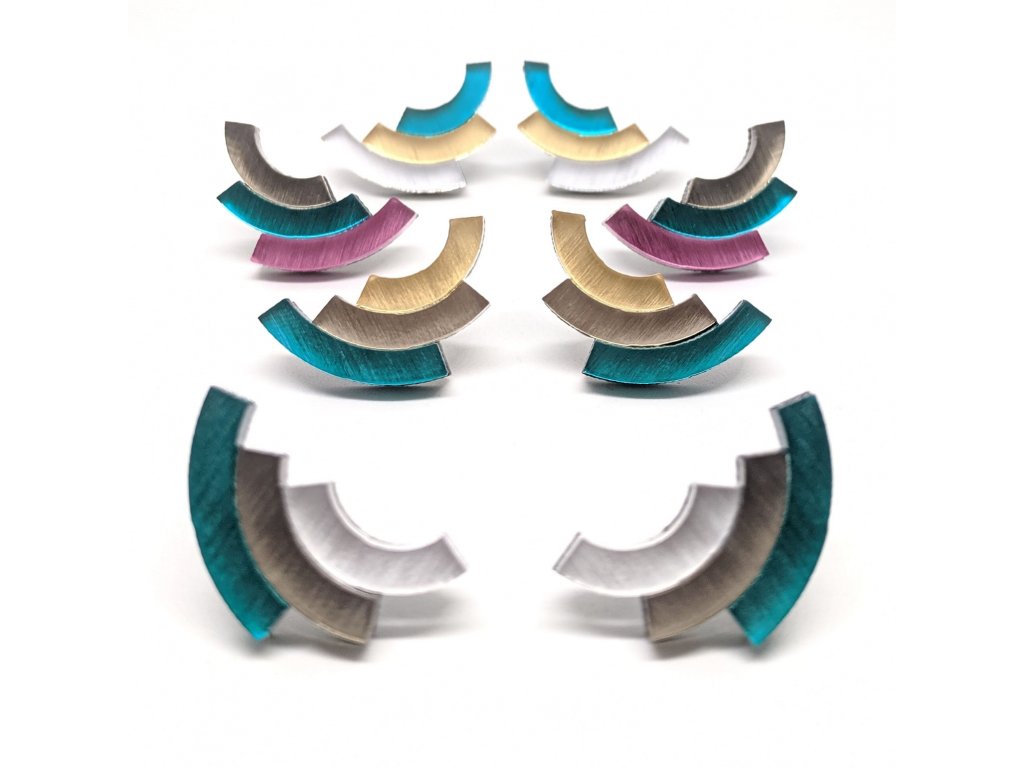 Náušnice jsou ručně broušené, což jim dává metalický lesk. Puzety jsou z chirurgické oceli a jsou do náušnic navrtané, takže se nemusíš bát odlepení.