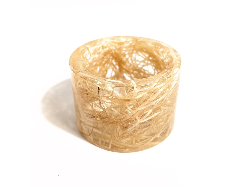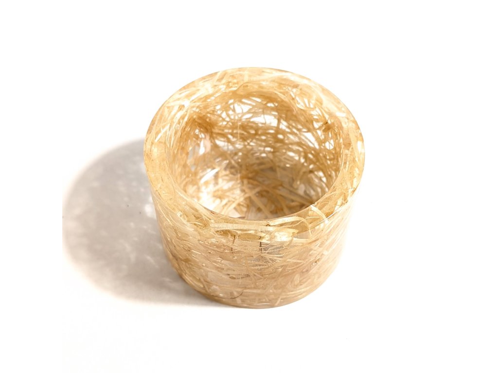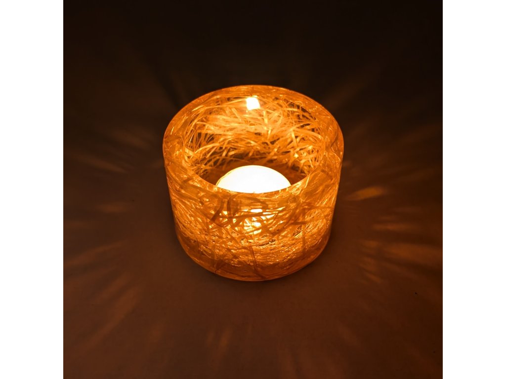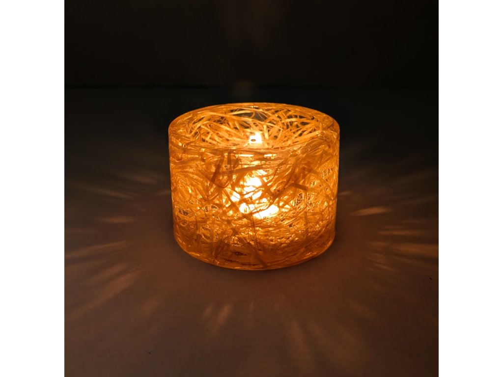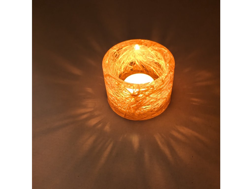 Každý svícen je jedinečný originál. Tento je vyrobený ze slámy a pryskyřice.