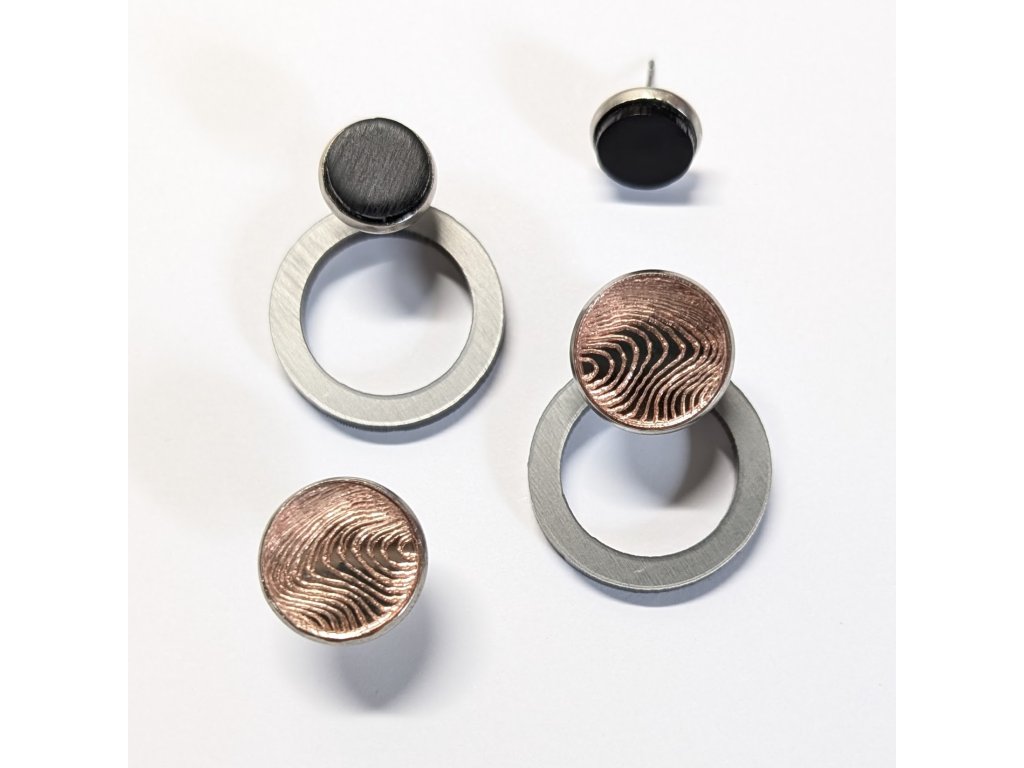 Materiál: plexisklo, puzety a zarážky z chirurgické oceli (vhodné pro alergiky)