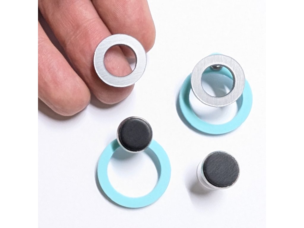 Materiál: plexisklo, puzety a zarážky z chirurgické oceli (vhodné pro alergiky)